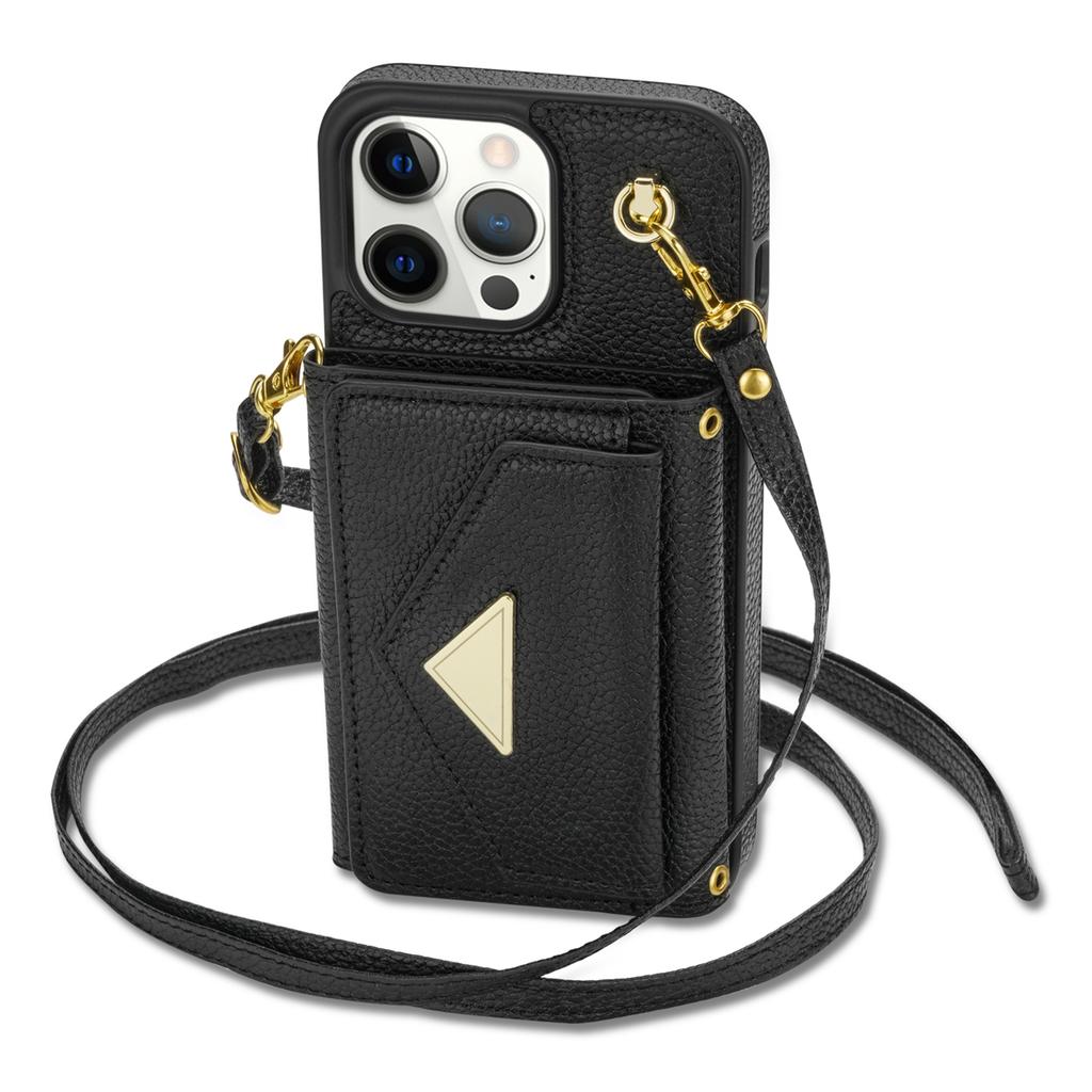 Für iPhone 16 Pro Hülle Kartenhalter Leder+TPU Handyhülle mit langem Riemen