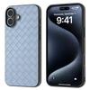 For iPhone 16 Plus Case Woven Texture Leather+PC+TPU Hybrid Phone Cover
