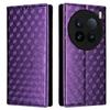 For vivo X100 Ultra 5G Case Rhombus Imprinted Wallet Stand PU Leather Phone Cover