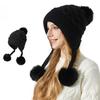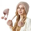 Karierte Dreikugel Verdickte Kaninchenfellmütze Damen Winter Samt Outdoor Warme Bommel Strickmütze