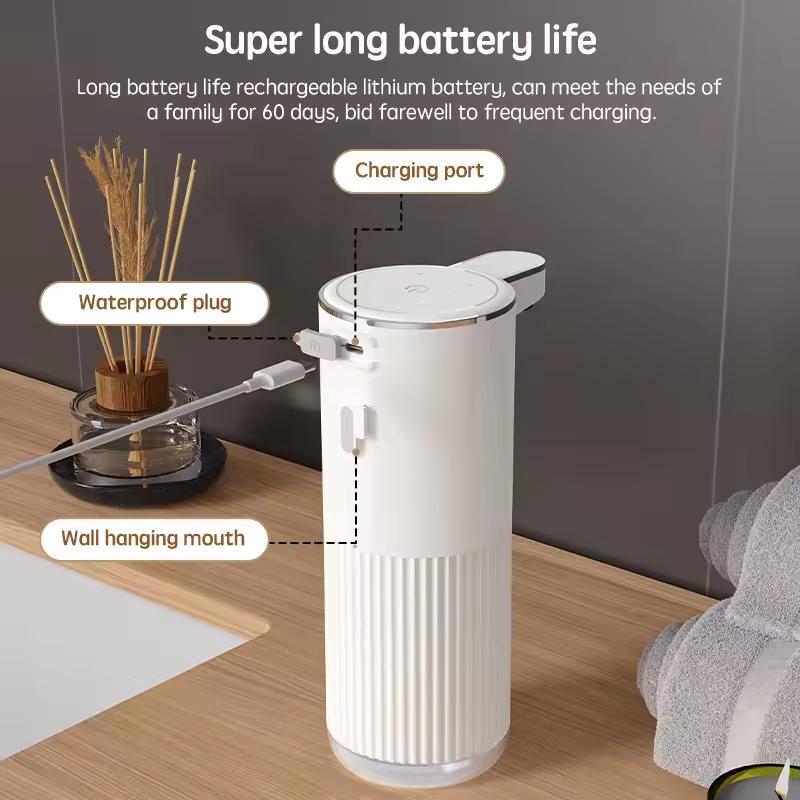 Automatischer Seifenspender 360ML Weiß 4-stufig Badezimmerzubehör Infrarotsensor Flüssigwaschmittel Wandmontage