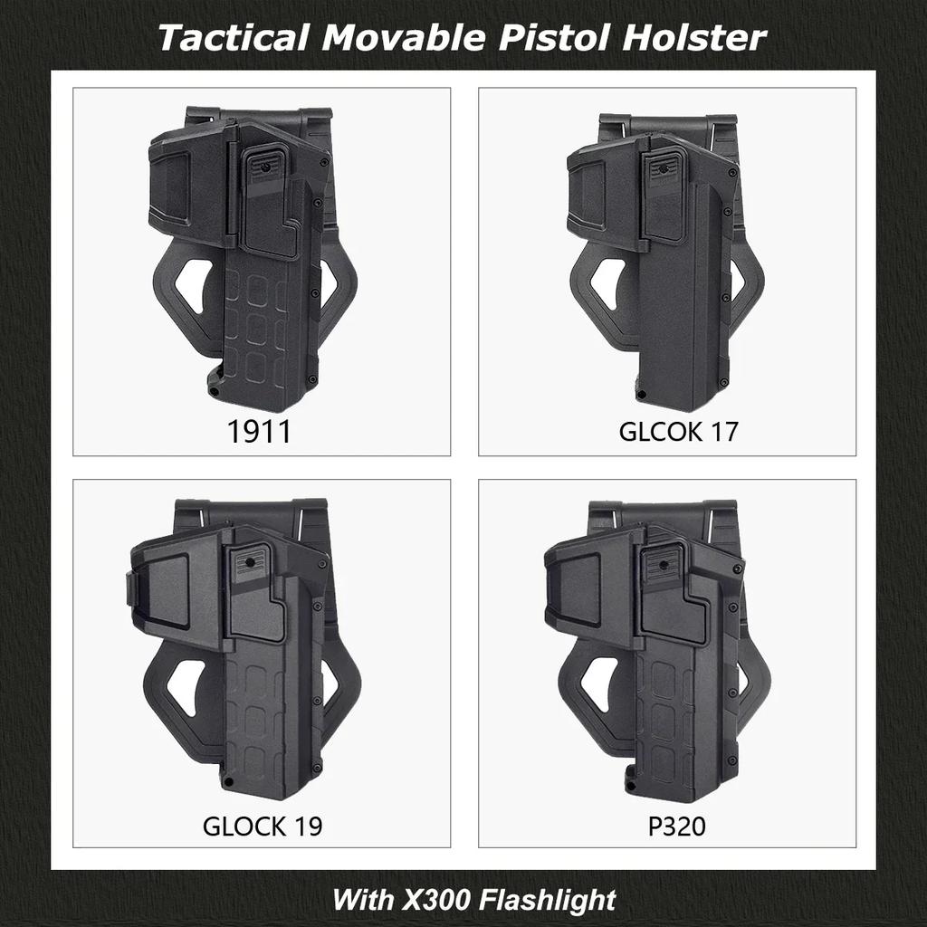 Taktisches Glock 17 18 19 Bewegliches Pistolenholster IR Laser Taschenlampe Montiert Airsoft Colt G17 Verriegelung Waffe Waffenlicht X300