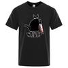 WAS? Messer Katze Print Herren Damen T-Shirt Anime Grafik Harajuku Übergroße T-Shirts Lässig Locker Lässige Herren T-Shirts Tops Kleidung