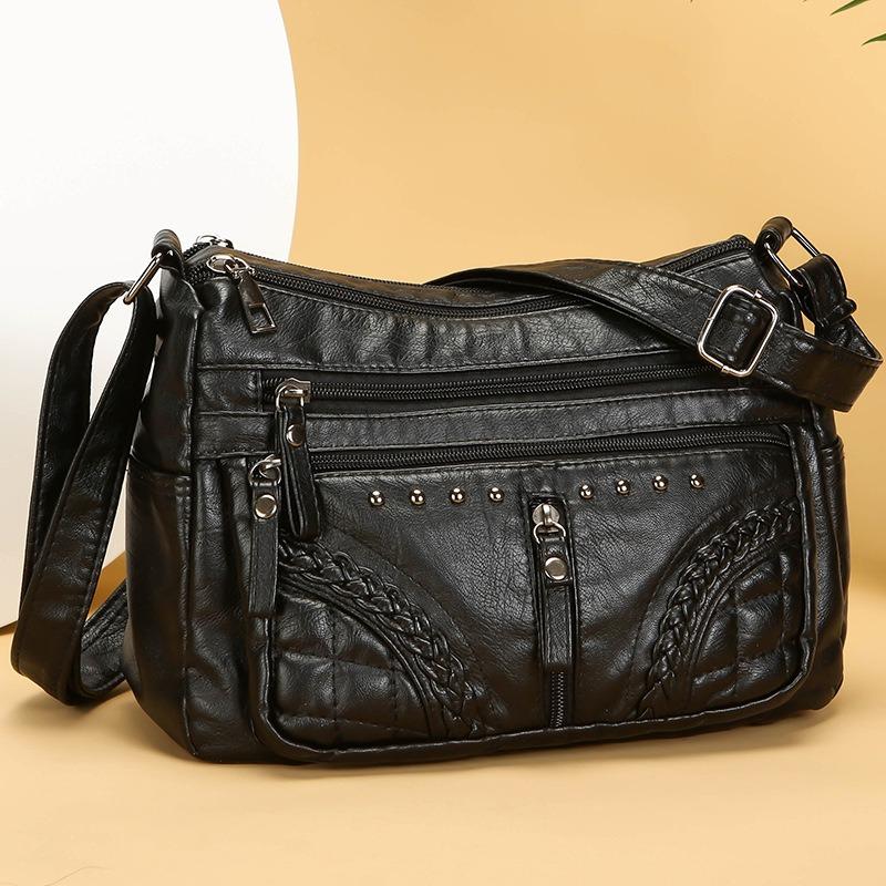Damen Tasche neue weiche Ledertextur mehrschichtig einfarbig Umhängetasche einfache Atmosphäre Mode lässig leicht Muttertasche