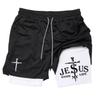 Kreuz Christlich Gott Bibel Beten Glaube Jesus Muay Thai Kickboxen MMA Doppellagige Shorts Herren Damen Unisex Schnelltrocknend Training Sport Fitnessstudio Workout