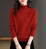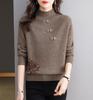 Damen Strickoberteil im chinesischen Stil mit halbem Stehkragen, einfarbiger Pullover, Pullover mit halbem Stehkragen für Damen