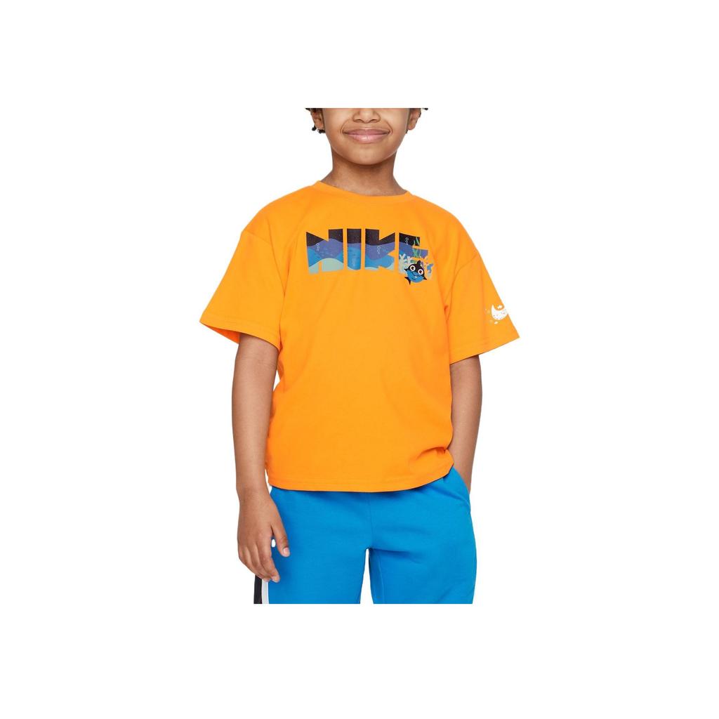 Nike Korallenriff-Buchstabenprint Lockeres Rundhals-Kurzarm-T-Shirt Kinder Oberteile Hell-Orange FQ0635-836