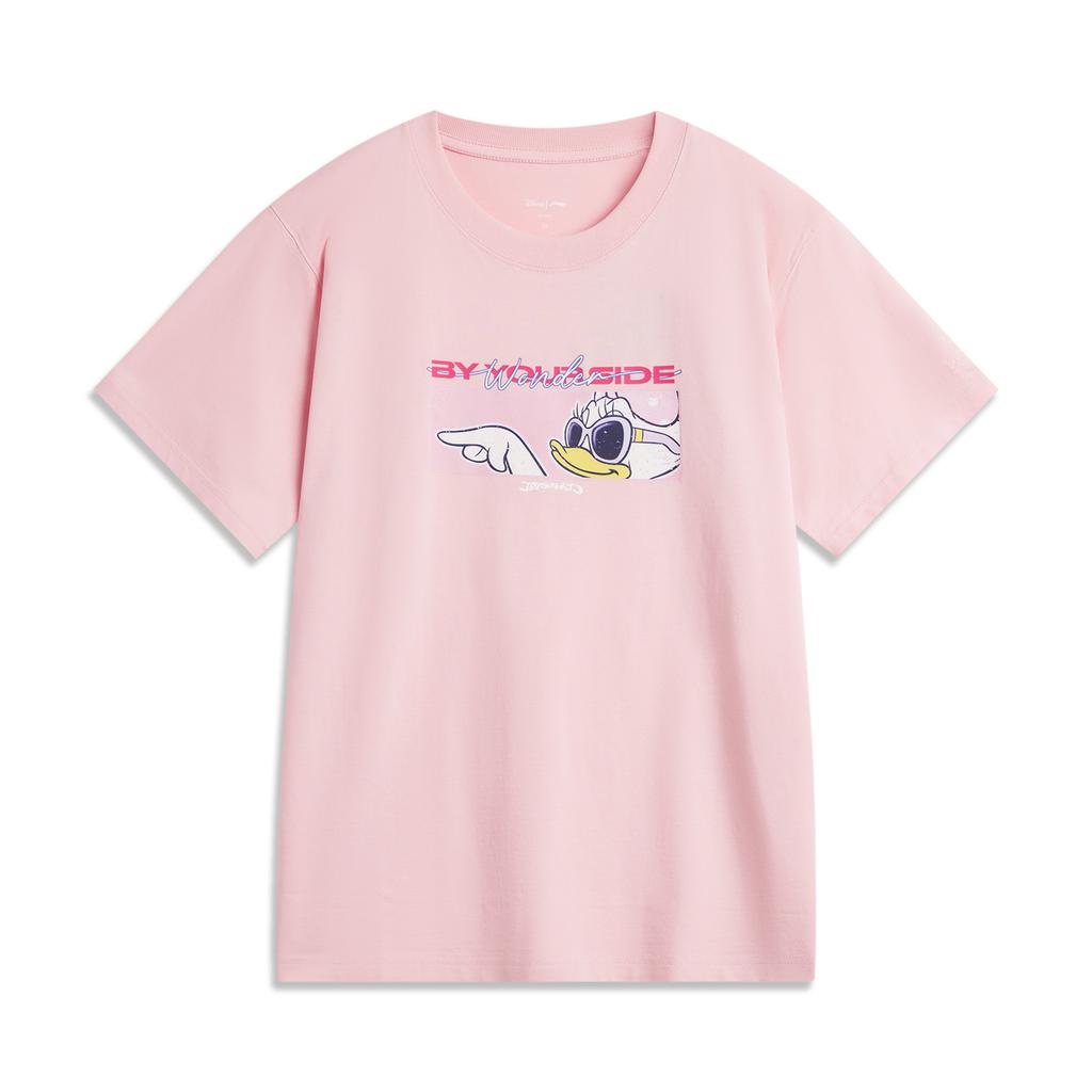 Li Ning X Disney Kollaborationsserie Vielseitiges Atmungsaktives Lockeres Weiches Bequemes Kurzarm-T-Shirt Damen Oberteile Neu-Korallenrosa AHSUA82-6
