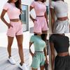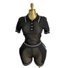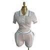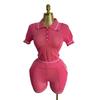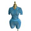 Western Style Fashion Casual Loose Knit Lapel Short sleeve Top Shorts Set Top and Shorts Set