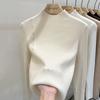 Ladies Autumn Winter Long Sleeve High Collar Slim Fit Basic Button Solid Color Pullover Knitted T Shirt Top for Layering