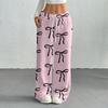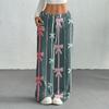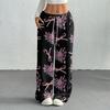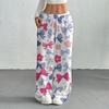 Damen Casual Mode Bedruckte Elastische Taille Locker Gerade Bein Hose Mit Kordel