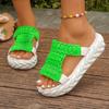 Frühling und Sommer neue Muffin-Absatz Plateau-Sandalen Damenschuhe gewebte Wolle bonbonfarben lässige Damen-Slipper