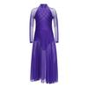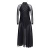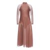Mädchen Performance-Kleid Strasssteine Transparenter Mesh Patchwork Design Fließender Rock mit Schlitz Schlüsselloch-Rücken Body