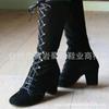 Herbst- und Winter-Damenstiefel, mittelhohe Damenstiefel, High-Top-Blockabsätze, Schnürstiefel in Übergröße
