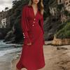 ZANZEA Damen Lässiges V-Ausschnitt Einfarbig Langarm Etuikleid