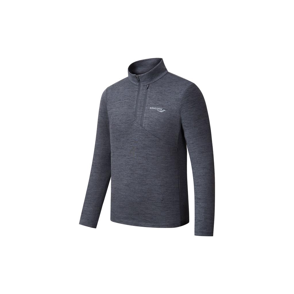 Saucony Sports Lifestyle Series Printed Stand Collar Slim Fit Long Sleeve Knit Top Men tops Black SC2249023A-HS01
