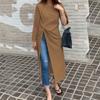 ZANZEA Damen Casual Langarm O-Ausschnitt Einfarbig Vorderschlitz Langes T-Shirt