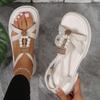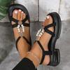 Plateausandalen Damen Sommer neu runder Zeh dicker Absatz elastisches Band Fuß Perlen Muffinsohle Sandalen