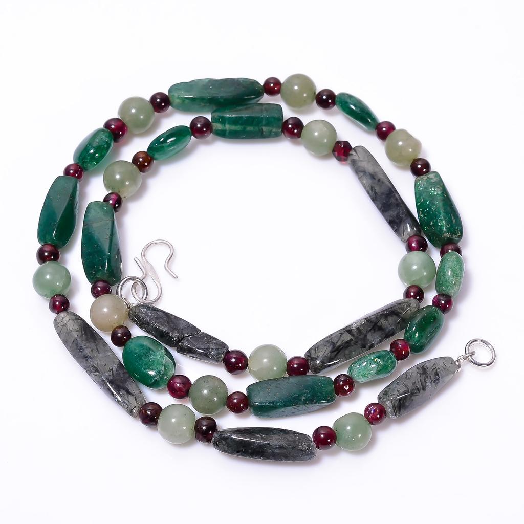 Natürlicher Grüner Aventurin Rutilquarz Granat Glatte Perlen Halskette 3-21 mm 18" UB-8591