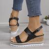 Große Größe Ein-Wort mit Keilsandalen Damen Sommer Cross-Border Schnalle Dicksohlige Gewebte Leichte Strandsandalen