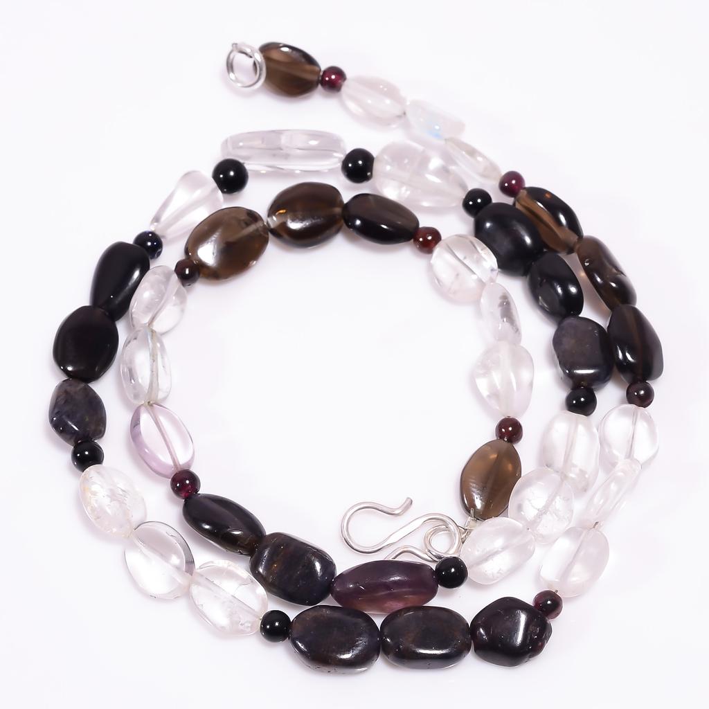 Smoky Quartz Crystal Black Onyx Gemstone Beads Necklace 3-15 mm 18" UB-7986 UB-7986