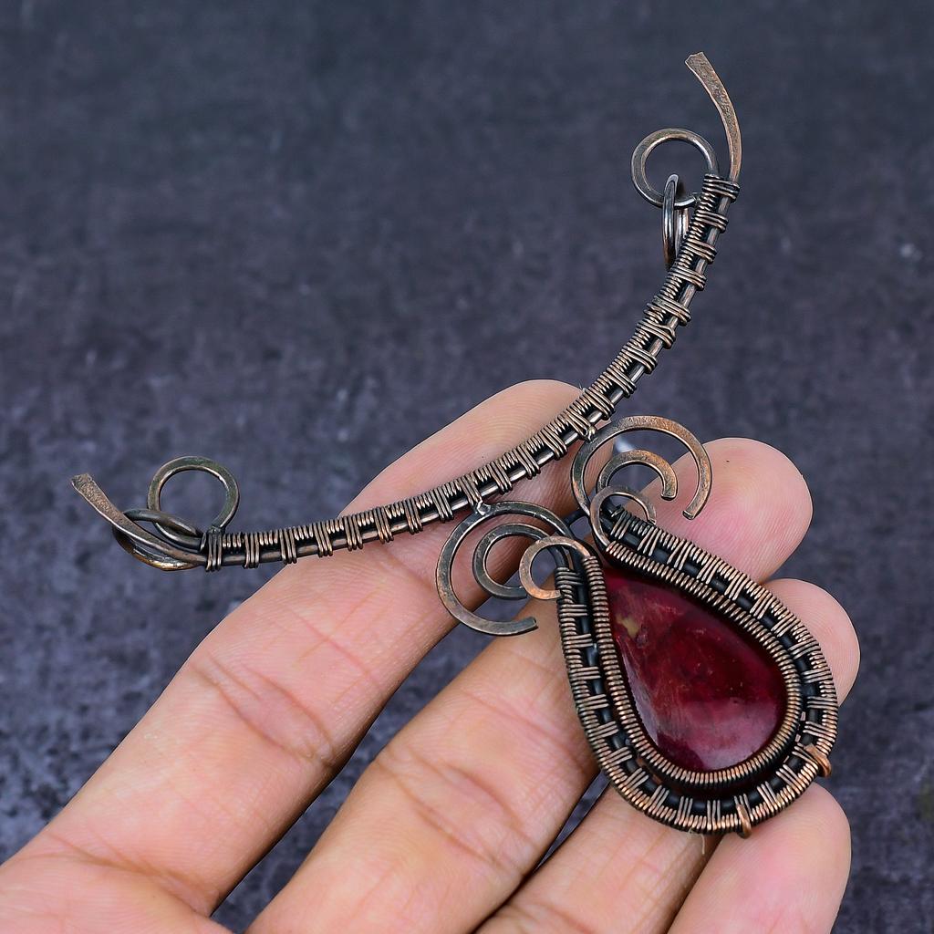Natürlicher Roter Labradorit Edelstein Kupferdraht Wickel Schmuck Halskette 18" d5M10