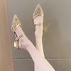 Modische Baotou-Sandalen für Damen Sommer Dicke Absätze Pantoletten Neue Mittelhohe Absätze für Damen Feenstil Sandalen Damen Designer Pumps