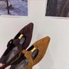 Mode Neuer Stil Mode Damen Grobe Absatzschuhe Quadratische Zehenpartie Flacher Ausschnitt Wildleder Metallschnalle Rutschfest Verschleißfest Low-Top Schuhe