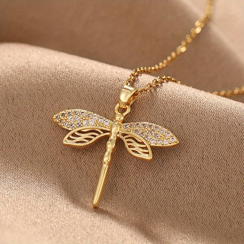 Trendige goldfarbene Libellenflügel-Halsketten für Damen Edelstahl Kristall-Halskette Alltagsschmuck Geschenke