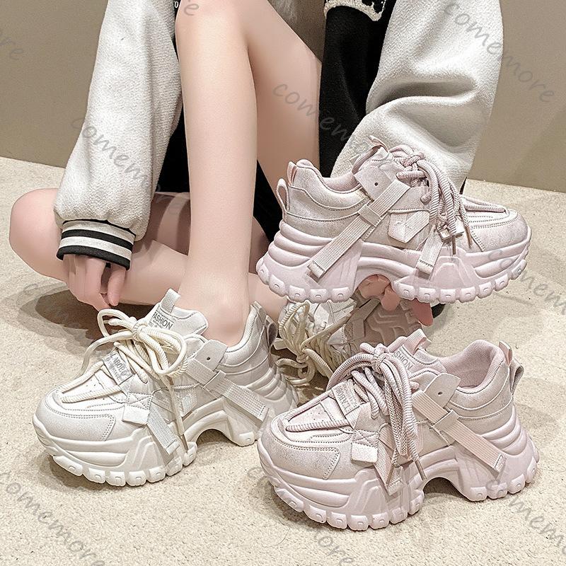 Mode Comemore Damenschuhe Höherlegung Mode Dicke Sohle Sneaker Große Größe Schnürung Klobig Hoher Absatz Frühling Herbst Sportschuhe