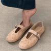 Mode Damen Flats Frühling Wildleder Runde Zehenpartie Flacher Ausschnitt Nieten Metallschnalle Weiche Sohle Rutschfest Verschleißfest Einzelne Schuhe