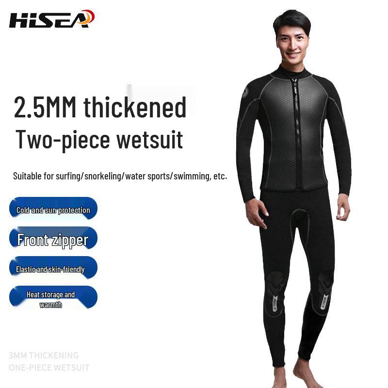 2,5 mm Herren Leder Split Neoprenanzug: Warme, Kältefeste Jacke & Sonnengeschützte Lange Hose mit Reißverschluss- & Klettverschluss-Anpassungen