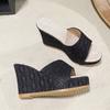 Damenschuhe in großen Größen Sommer neu einfarbig Keilabsatz große Größe coole Hausschuhe Damenmode Außen-Sandalen