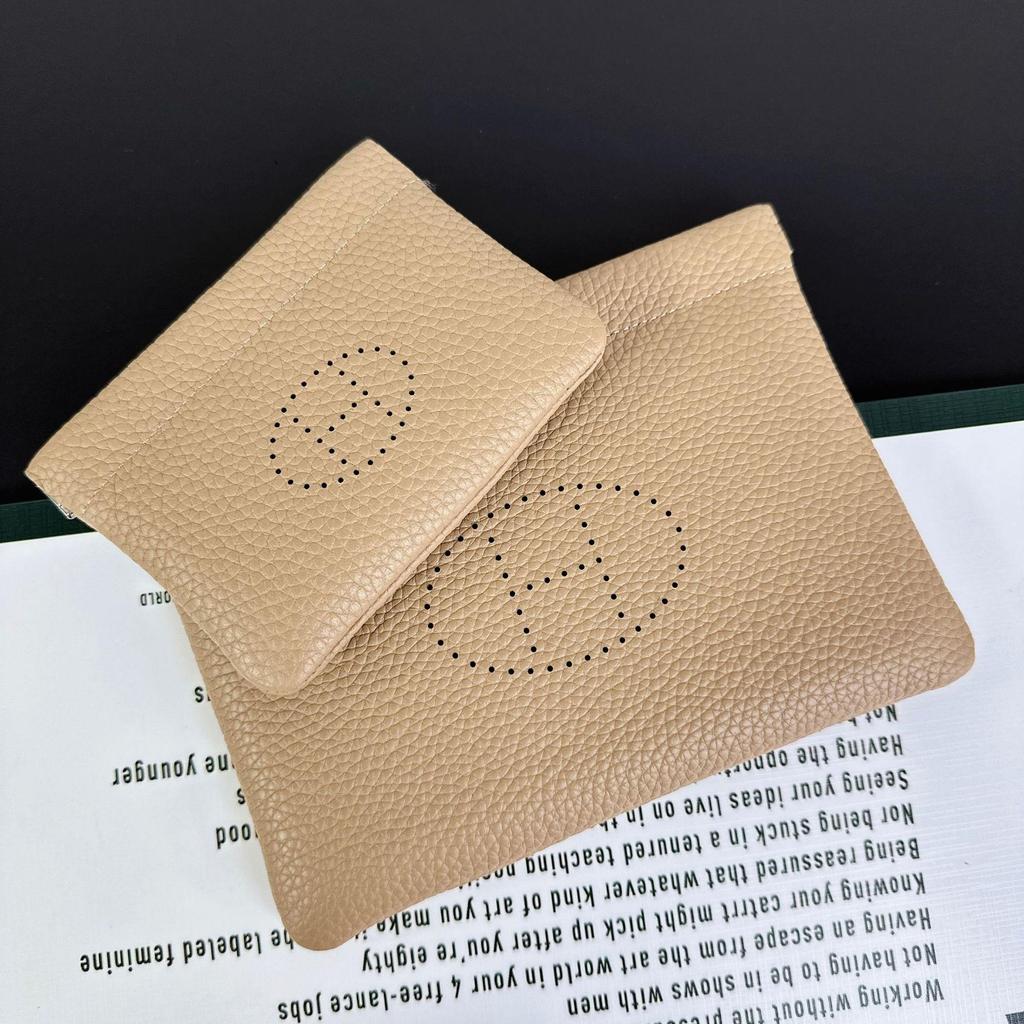 H Haus Mini Geldbörse aus echtem Leder: Togo Rindsleder Geldbörse, Schlüssel- & Lippenstifthalter, ID- & Kartenorganisator