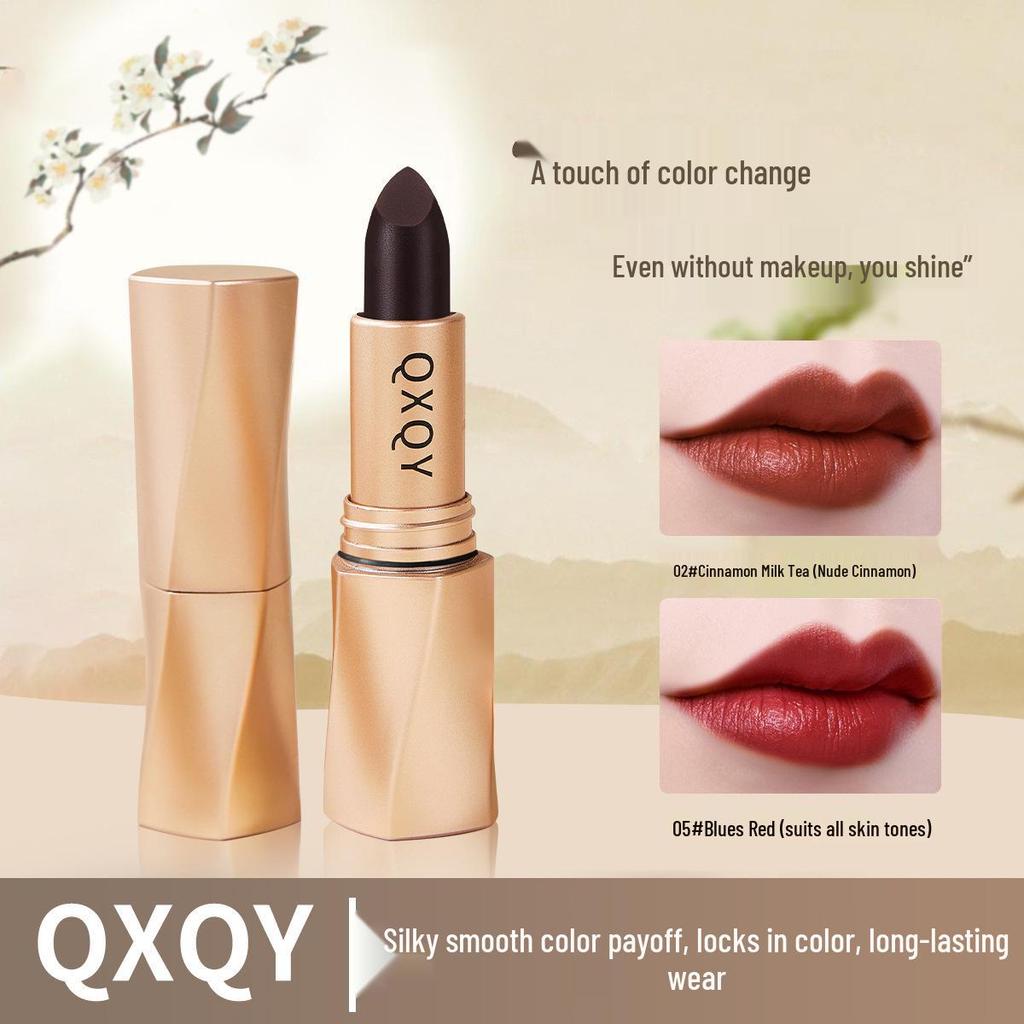 QXQY Schwarzer Samt-Matter Lippenstift in Bohnenpaste-Farbe, Geschmeidig & Langanhaltend—Verbessert den Teint für einen jugendlichen Herbst-/Winter-Look.
