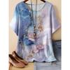 Modisches Damen-Freizeit-T-Shirt mit Blumen- und Schmetterlingsmuster, 3D-Digitaldruck, Rundhalsausschnitt, kurze Ärmel