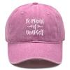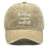 be proud of yourself" Print Snapback Sun Hat, Trucker Hat Adjustable Buckle Headwear Raw Brim Non-Stretch Fabric Snapback Baseball Cap
