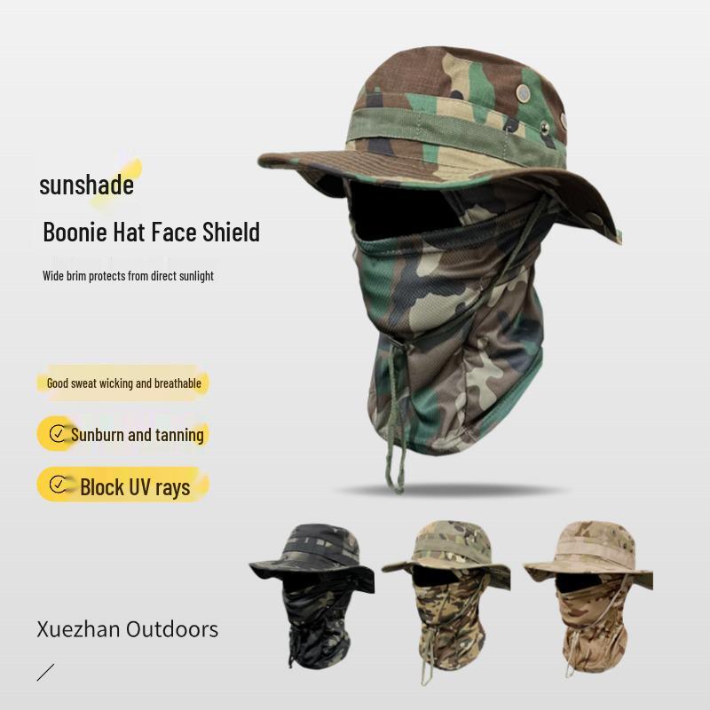 Camouflage Winddichter Fischerhut & Sonnenschutzmasken-Set für Outdoor-Aktivitäten