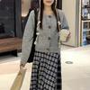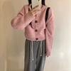 Damen Strick-Cardigan mit Rundhalsausschnitt, locker geschnitten, einfarbig: Lässiger Pullover im koreanischen Stil für Herbst und Winter