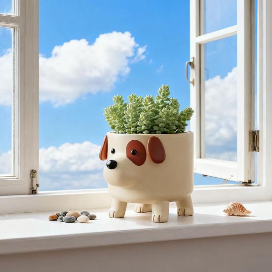 Welpen-Blumentopf Niedlicher Keramik-Pflanztopf Desktop Dekorative Hunde-Pflanzgefäß für Sukkulenten Heim-Büro-Dekoration Geschenk für Hundeliebhaber