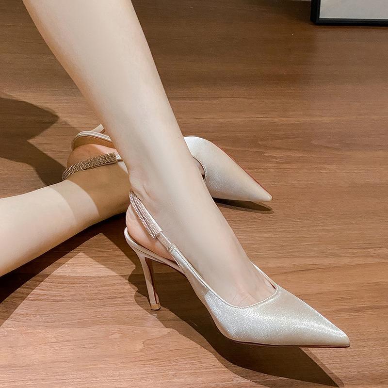 Ein-Wort-Sandalen mit Taschenkopf Damen Frühling und Sommer kleine Absätze und Satin schönes Temperament spitze Stiletto-High Heels