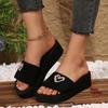 Mode Damen Herzform Perle Mittelhohe Absatz Hausschuhe Mode Zehenfrei Keilabsatz Schwarz Pantoletten Damen Sommer 2025 Outdoor Dicke Sohle Sandalen