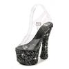 Mode Hentian Hohe Dicke Absatz Sandalen für Damen 2025 Sommer Neu Hoher Absatz Plateau Pailletten Laufstegmodell High Heel Schuhe Damen Slipper