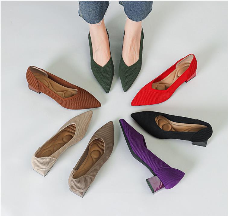 Mode Damenabsätze Pflaumen Gestrickt Atmungsaktiv Rutschfeste Gummisohle Schuhe 2025 Neue Ausgabe (6cm Hoch) Übergröße 43 42 Damenschuhe