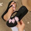 Mode Neuer Stil Blume Dekor Keil Zehentrenner Damen Sommer Dicke Sohle Clip Zehen Hausschuhe Frau Outdoor Strand Gewichtslos Pantoletten Mujer