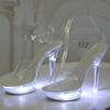 Mode 2025 Neu 34-43 Sexy Super High Heel Schuhe Leuchtender Schlanker Absatz Plateausandalen Transparentes Modell Kristallschuhe Hochzeitsschuhe