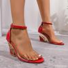 Modemarke Designer Seltsame Absätze Sandalen Damen Sexy Knöchelriemen Transparente PVC Riemen Sandalen Super Hohe Absätze Party Kleiderschuhe