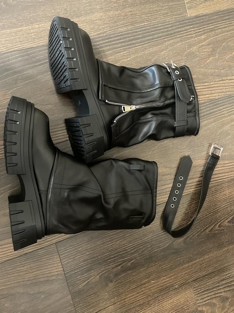 Mode Winter Frauen Biker Stiefel Mode Gürtel Schnalle Damen Elegante Plattform Lange Rohr Booties Casual frauen Knie Hohe Booties2024