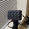 Black Minimalist Mini Square Shoulder Bag, All Matching Argyle Pattern Flap Crossbody Bag
