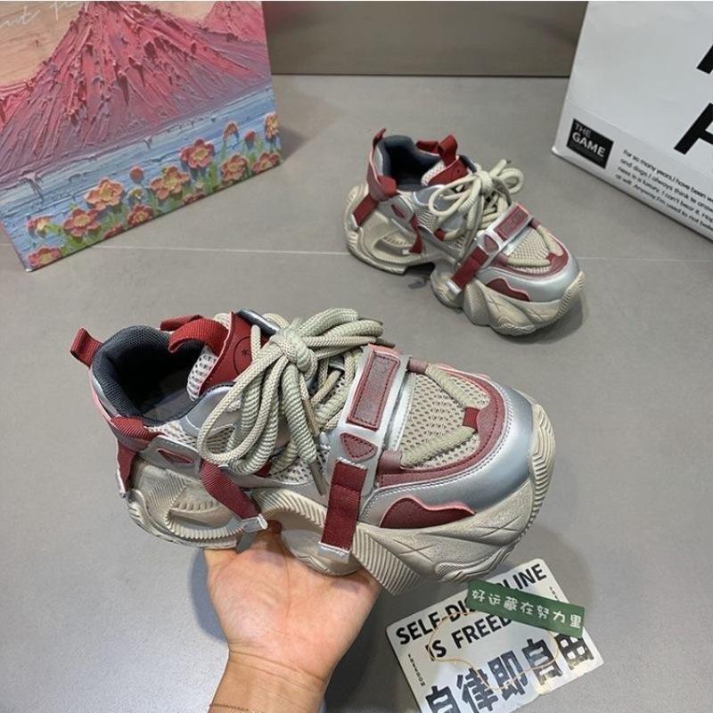 Damen-Sportschuhe mit dicker Sohle, Herbst neu, Retro-Schnürsenkel, höhenerhöhend, lässiger Trend, Farbabstimmung
